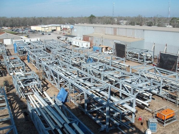 Bay Ltd. completed the fabrication and assembly of 101 pipe rack modules, with installed pipe, to support this expansion at our two Louisiana facilities.  67 were completed at Amelia, Morgan City and 34 at Belle Chase, New Orleans for a total of 4,080 Tons.  Dimensional control by total station was used to ensure construction tolerances were met and when all units were installed there were no miss-fits or errors to be rectified.  Work started in October 2008, the first shipment was made in March 2009 and the final shipment completed in November 2009 utilizing barge for the large units and truck for the small ones.  A total of 274,000 hours of direct labor were expended.